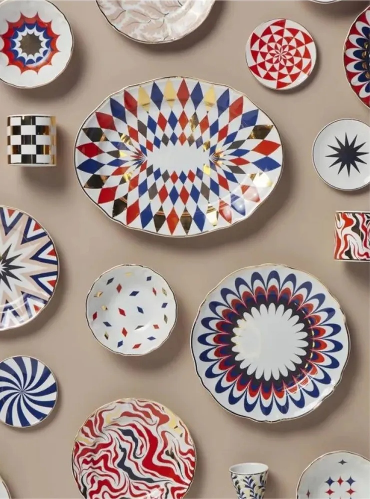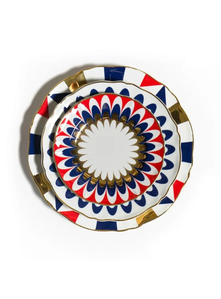 Дизайн: яркий графичный узор с фирменными магическими мотивами и изящным золотистым кантом — эффектный акцент в стиле La Tavola Scomposta
