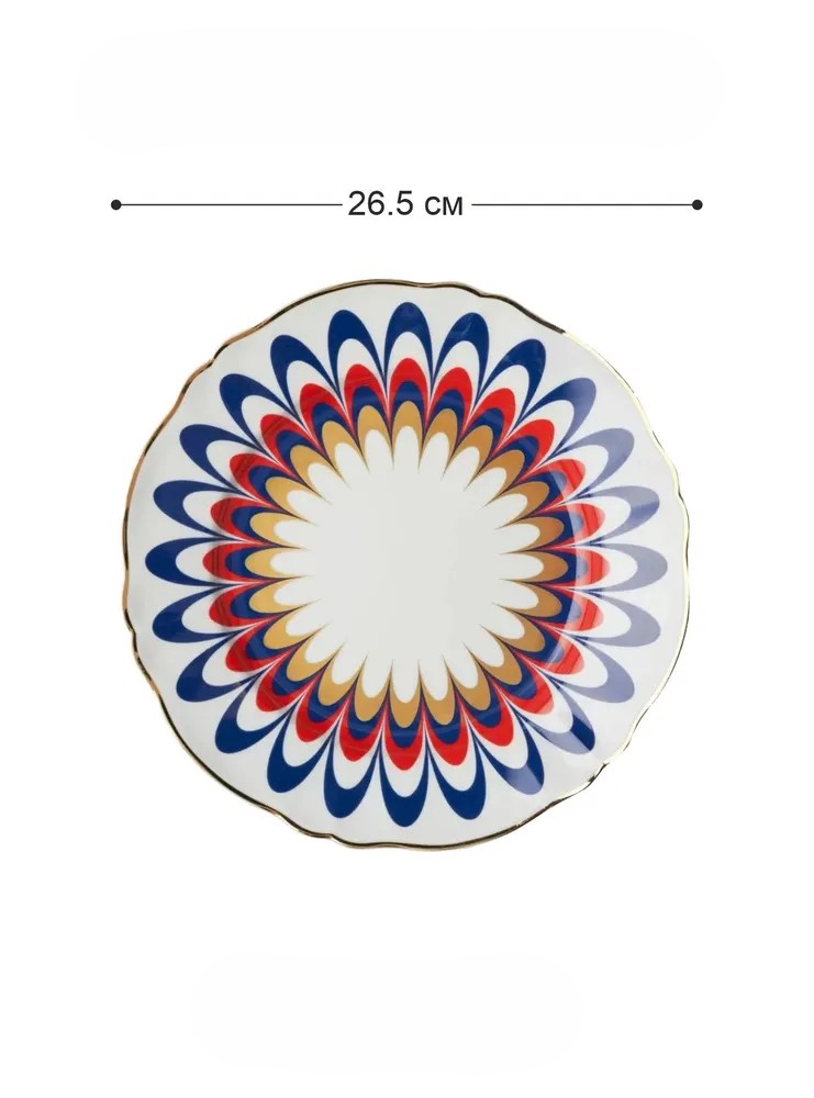 Размер: диаметр 26,5 см (классический формат обеденной тарелки) — идеально подходит для подачи основных блюд: пасты, мяса, рыбы, салатов