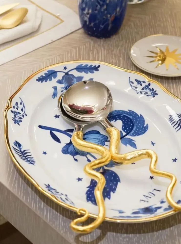 Дизайн: выразительный фирменный принт Bitossi с яркими цветовыми акцентами и утончённым золотистым кантом — эффектная деталь стола в духе La Tavola Scomposta