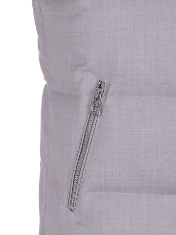На передней части жилета расположены два боковых кармана, которые застегиваются на молнии, позволяя безопасно хранить личные вещи. Цвет жилета — универсальный серый оттенок, который легко сочетается с различными элементами гардероба. Модель может быть удобной как для повседневного использования, так и для активного отдыха на открытом воздухе, обеспечивая тепло и комфорт без ограничения свободы движения рук.