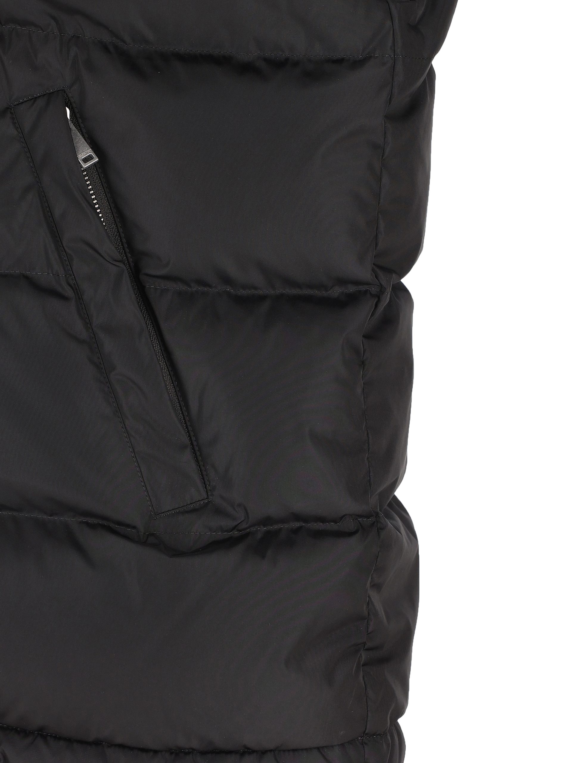 Современный дизайн и городской дух сочетаются с фирменным жилетом Valentino Garavani. Изготовленный из черной технической ткани с теплой и легкой обивкой, он отличается четким и функциональным внешним видом, идеально подходящим для половинных сезонов. Эмблема VLogo, нанесенная на грудь, подписывает одежду отличительным графическим штрихом. Практичный для наложения на толстовки или трикотажные изделия, он придает стиль гардеробу на открытом воздухе.